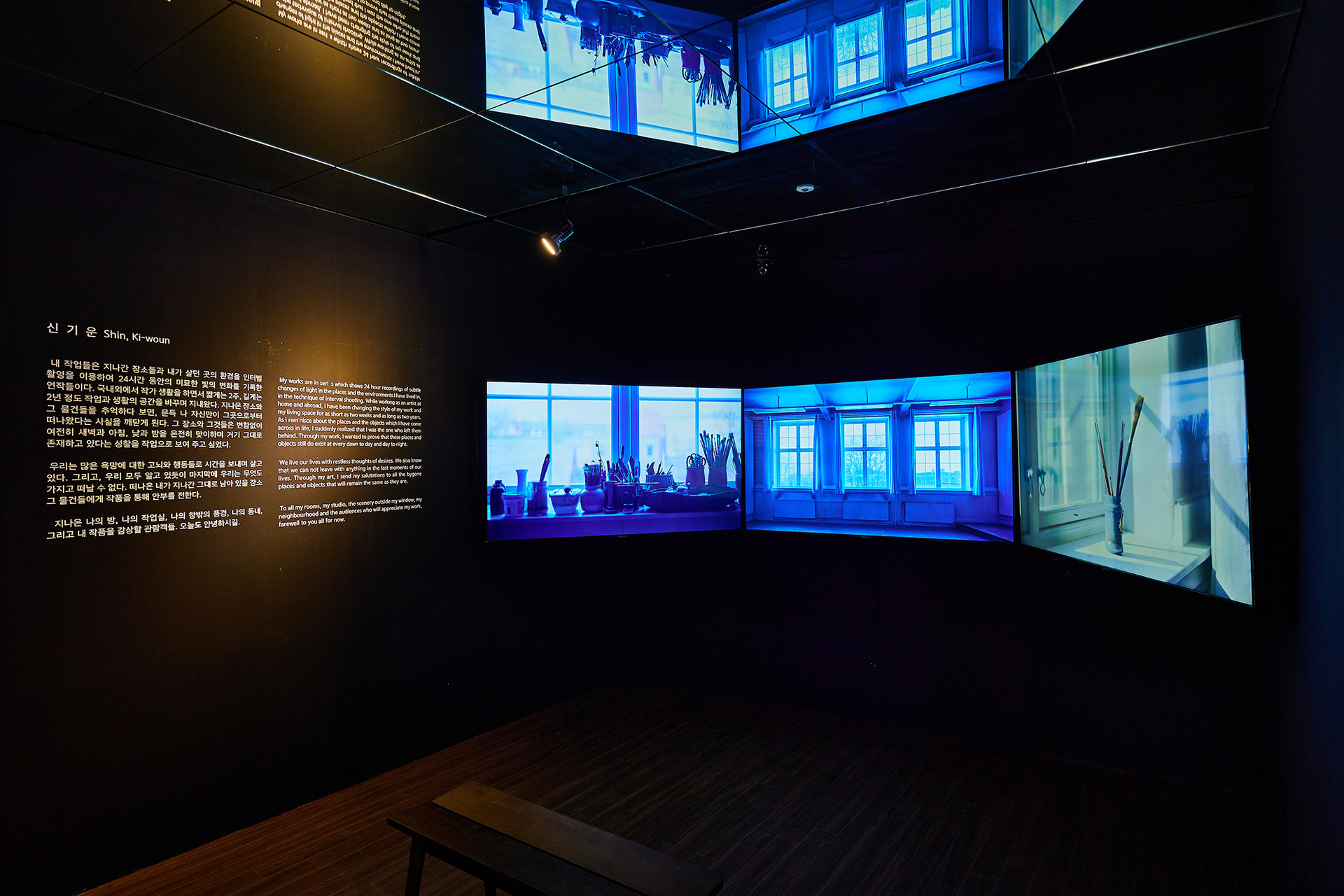 <리얼리티 테스트>는 믿지 못할 장면을 봤을 때 볼을 꼬집어 보는 것처럼 꿈인지 현실인지 자각을 위해 하는 행동을 말한다. 신기운의 작품은 ‘지금 내가 존재하는 이 공간이 가상현실인지 실제 존재하는 공간인지 논리적으로 구분하는 것은 사실 어렵지 않은가?’라는 의문에서 시작한다. 가상의 세계는 이미 현대사회에 깊숙이 자리 잡고 있으며 기술의 발전으로 현실과 가상을 구분하는 기준 자체가 점차 모호해지고 있기 때문이다. 현실의 세계와 3차원 가상의 세계를 이야기 하는 ‘메타버스(Metaverse)’를 미술의 영역에서 다시 접근해 보면, 가상의 환경이 존재하느냐 아니냐의 담론 보다는 지적 가치의 작품을 가상공간 속에 창출하고 공유하는 새로운 예술적 향유 방법이 관람객에게 어떤 의미로 다가가는지가 더 중요할 것이다. 이번 전시에서 작가는 기억 속에는 존재했던 장면이지만 사실 그것의 실체는 없거나, 혹은 확실히 존재했었지만 기억의 모호함으로 인해 놓쳐버린 어떤 이미지들을 가상공간에 새롭게 되살리는 영상 작업을 선보인다. 게임 엔진 기술을 통해 작가의 기억 속 심리적 공간으로 표현되는 이번 실험은 카메라 촬영 없이 디지털 데이터로만 창조된 오브제와 공간, 날씨, 시간, 장소의 조합이다. 이를 통해 작가는 늘 머릿속에 있던 미완의 이미지를 가시적으로 완성시켰다.