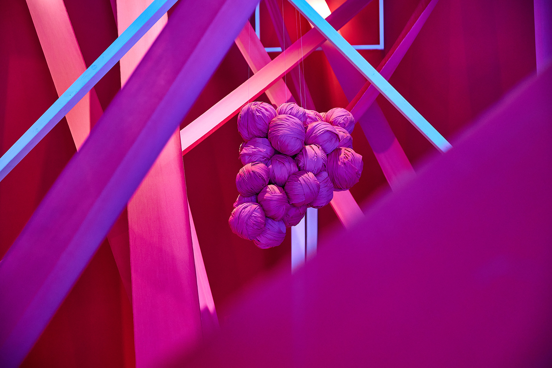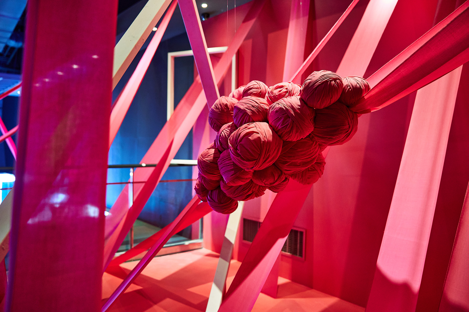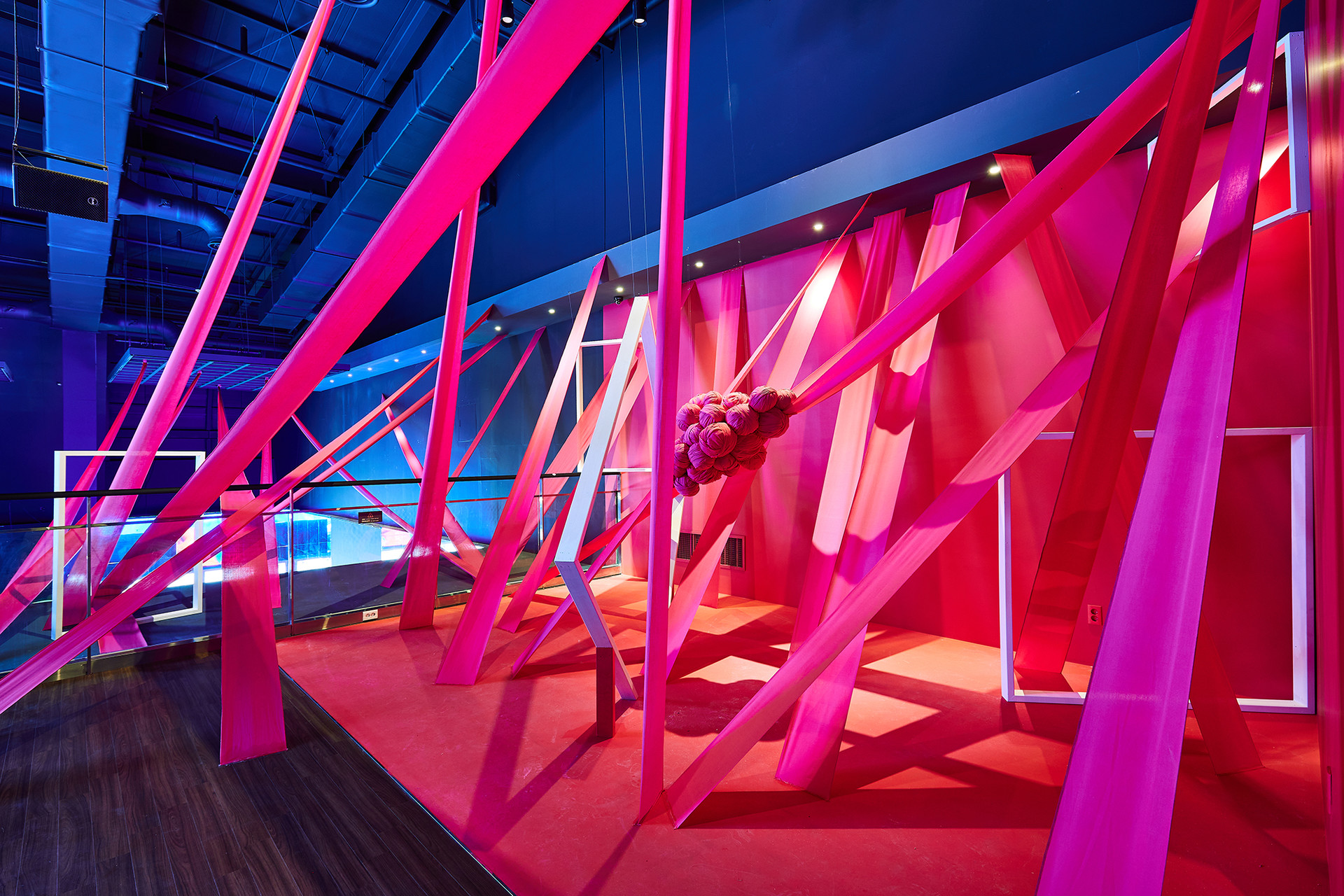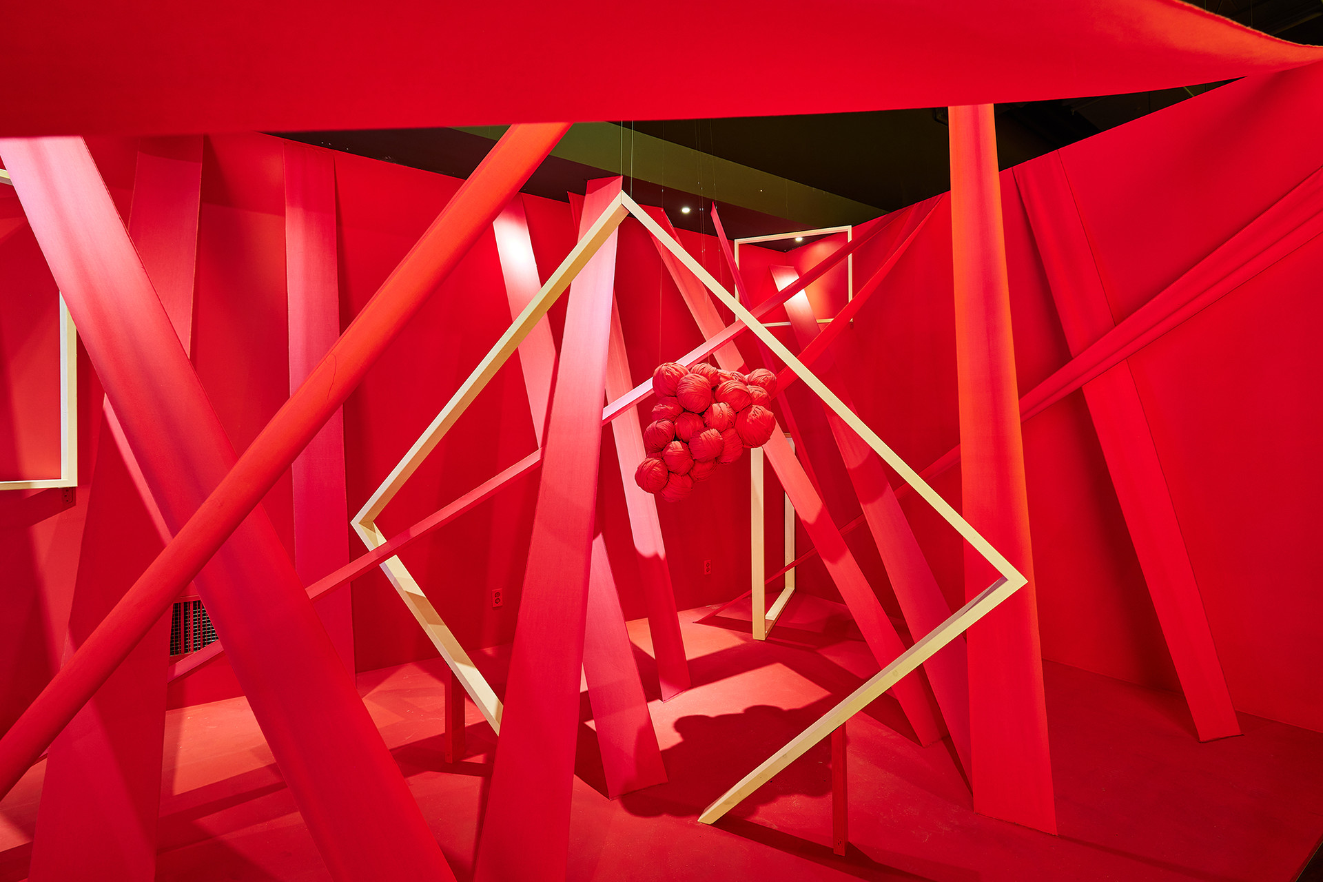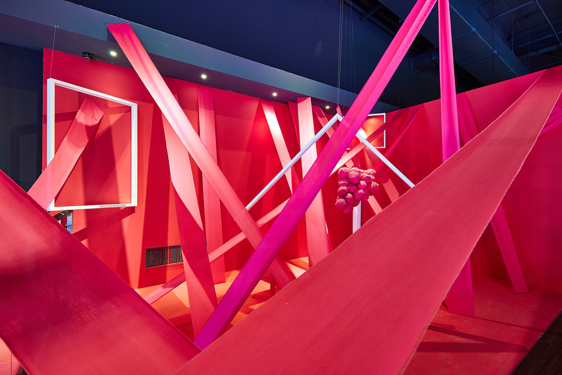 나의 작품은 천장을 중심으로 출발하여 벽으로, 바닥으로, 혹은 또 다른 천장으로 각기 다른 각도와 형태를 띠며 전체적으로 큰 덩어리의 공간을 이룬다. 화이트 프레임 안팎으로 다른 공간이 펼쳐질 거란 상상과 함께 핑크색 천의 형태를 눈으로 따라 가려다 보면 관람객은 어쩔 수 없이 고개를 들기도 하고 숙이기도 한다. 복잡하고 모호한 동선임에도 불구하고 관람객 입장에서는 작품 중앙 어딘가로 굳이 비집고 들어가 볼 만하다. 작품 안에 들어섰을 때 체험하게 되는 웅장함은 높은 천장과 엄청난 규모를 자랑하는 미술관의 역할이 빛을 더해 줄 것이다. 일상에서 잠시나마 여유를 찾기 위해 전시장을 찾는 이들을 위해 나는 ‘낯설음’이라는 것을 관람객이 눈으로 직접 보고 몸으로 체험하고 감각으로 느끼는 이상한 경험을 하길 바란다. 이상한 공간에 내가 지금 우뚝 서있다고 깨닫게 되는 그 순간에 우리는 일상에서 벗어나 무언가로부터 완벽히 벗어난 온전히 자유로운 상태가 될 것이며 바로 이 지점에서 정신의 치유를 느끼게 될 것이다.