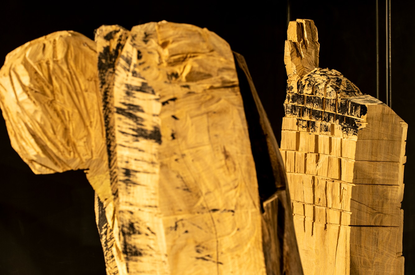 Donghoon Rhee carves plants, animals, and human figures from wood. He has explored the human form sculpture through subjects drawn from K-pop idols and their dance movements. The act of capturing the body in motion demands a different kind of analysis and expression than that required for static still-life sculpture.
