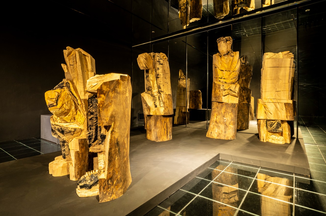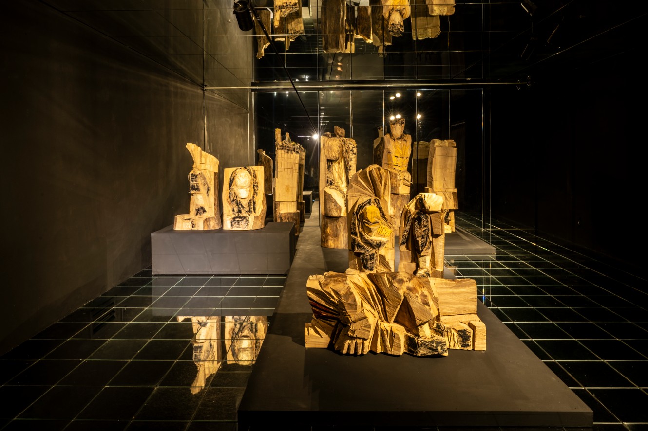 Acrylic on elm, dimensions variable