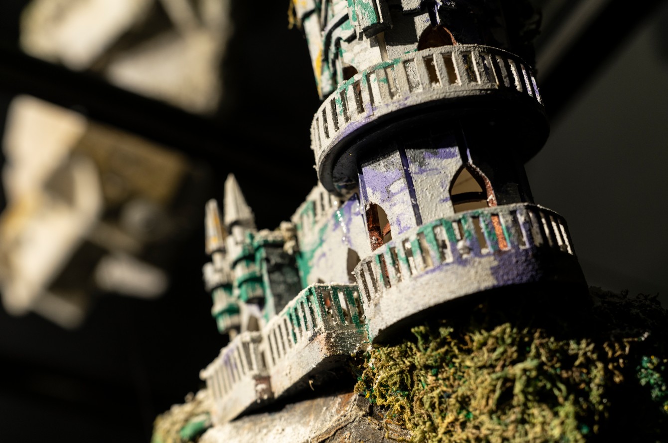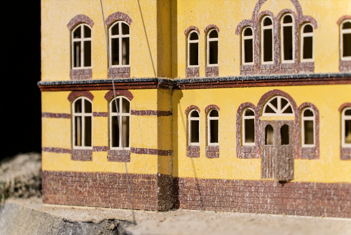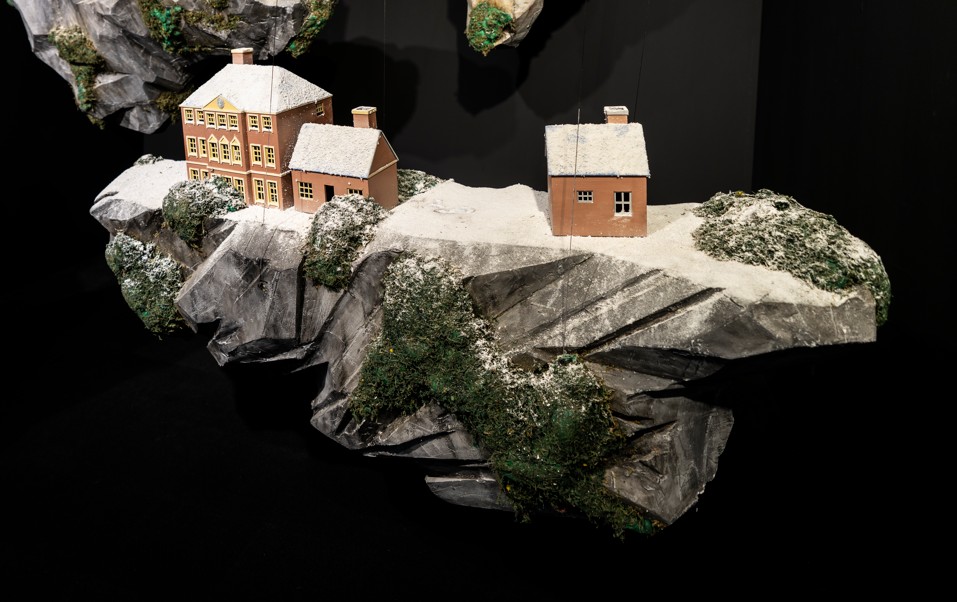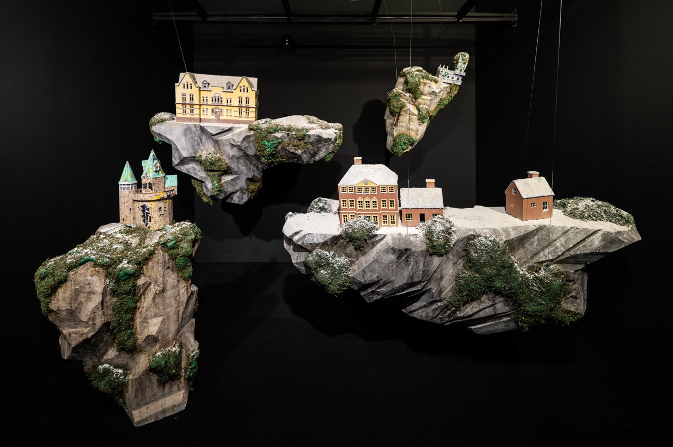 유은석은 주로 건축물의 재현을 통해 현대사회와 인간의 관계성을 부각한 작업을 한다. 부유하고 있는 섬 위에 지어진 건축물은 지인의 집이거나, 유명한 건축물, 혹은 실제로 존재하는 건물들의 재현이다. 하지만 그가 표현한 건축물은 우리가 익히 보아오던 보편적인 형태가 아니다. 평평한 땅 위에 단순히 세워진 건물이 아닌 불안정한 지반에 아슬아슬하게 놓인 건물로 초현실적인 형태로 공간 전체를 연출한다.