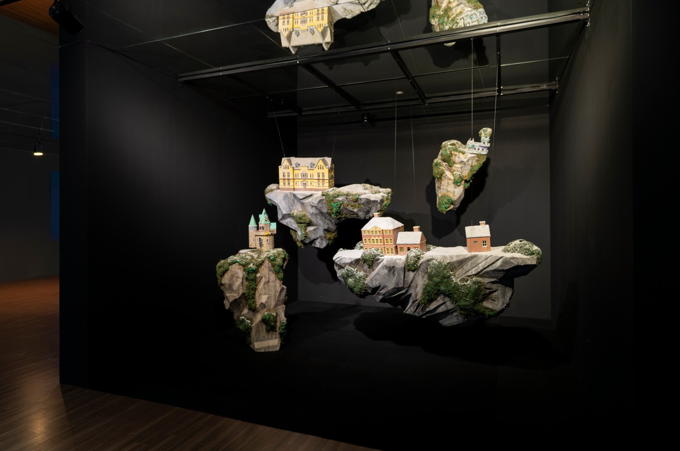 Eunsuk Yoo’s works highlight the relationship between human beings and contemporary society through the representation of architectural forms. The buildings constructed on floating islands are depictions of acquaintances’ houses, iconic architectural landmarks, or real existing structures. However, the buildings he portrays differ from the conventional architectural form we are familiar with. Rather than standing on solid, level ground, they precariously rest on unstable terrain, creating whole space full of surrealistic and dreamlike atmosphere.