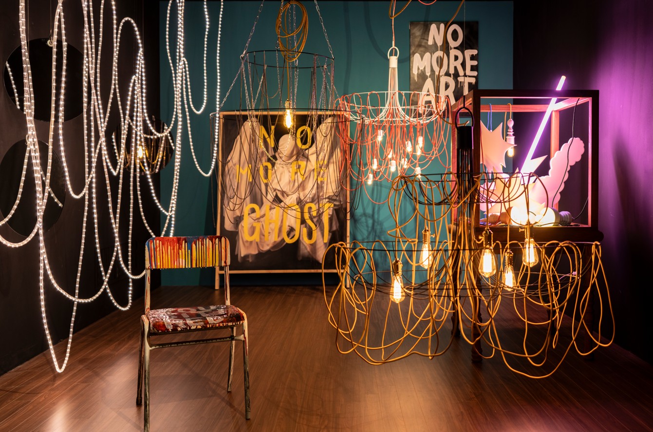 Through the collision between ornamental light and worldly imagery, Park attempts to visualise both the brilliance and the emptiness of human desire, as well as a silent challenge to authority. Using lighting installations and a pop-art language, he reflects on how the desires of our time are consumed and eventually collapse.