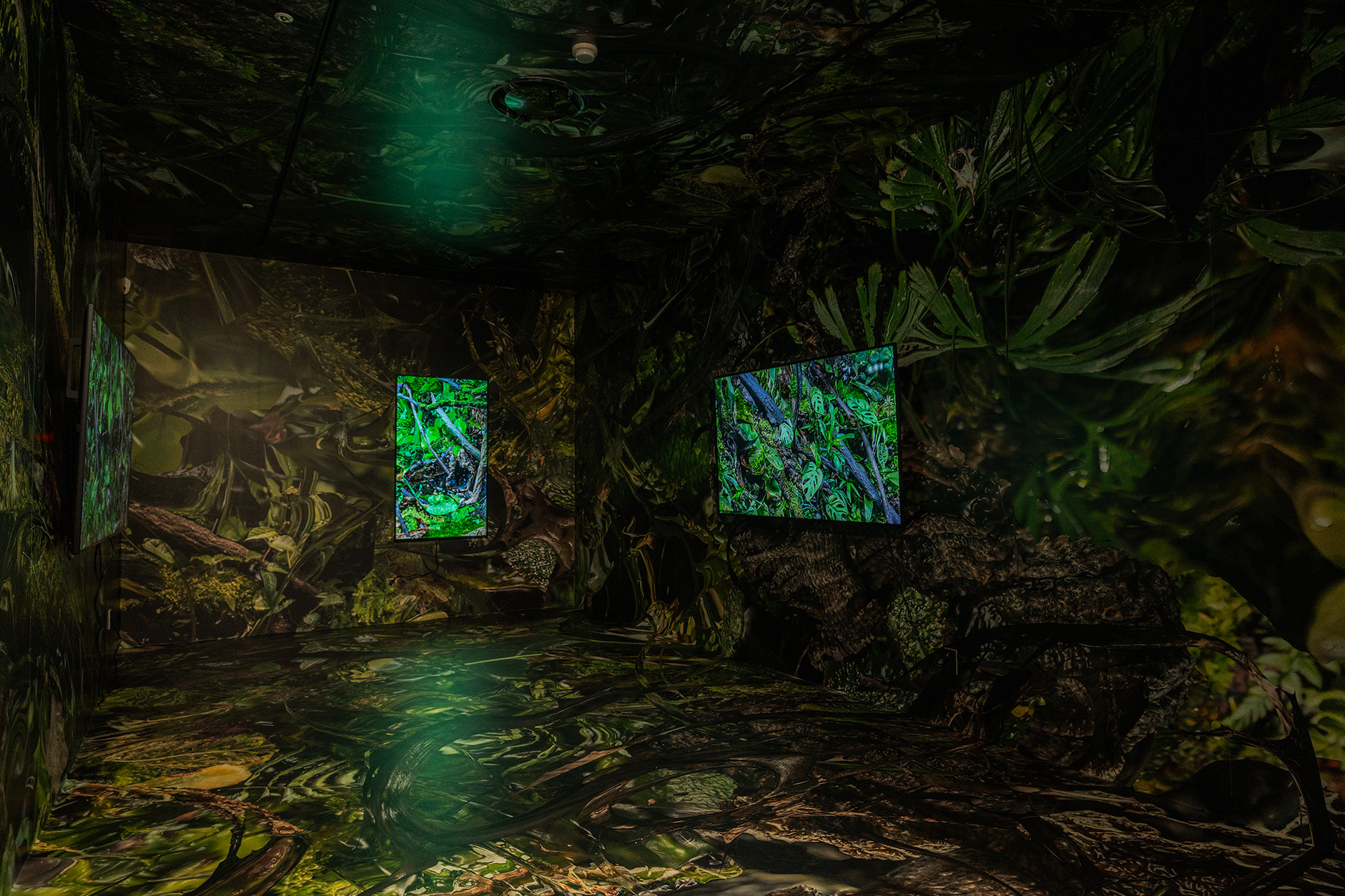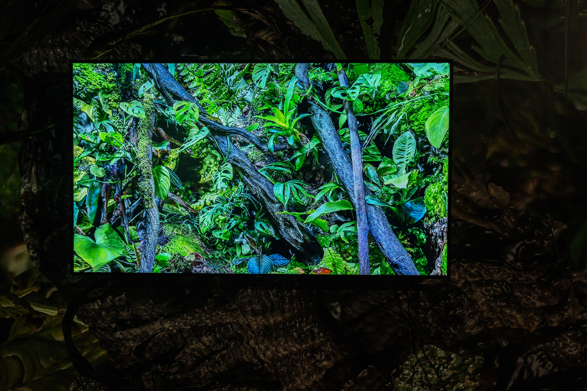 구기정은 실재하는 풍경을 3D 렌더링 기반의 디지털 이미지로 재현하고, 이를 물리적 공간에 영상 및 설치 작업으로 구현하면서 인간과 기계, 자연의 관계를 추적한다. <미세한 풍경> 속 인공 정원은 푸른 식물과 이를 모방한 디지털 이미지 그리고 자연적 속성을 뛰어넘는 기계적 생물이 공생하고 있다. 이 작품은 자연의 풍경을 그대로 가지고 오려는 시도처럼 읽힐 수 있으나, 사실 정교한 3D 편집술과 고도의 디스플레이를 통해 본래의 자연적 특성과는 상반된 완전한 인공적 환경을 추구한 결과물이다. 가상과 현실을 오가며 채집된 이미지와 사물이 불러일으키는 시각적 착시는 일상화된 기술력 안에서 여전히 낯선 일상을 마주하게 되는 오늘의 상황을 은유하고 있다. 작가가 만들어낸 고유한 풍경들은 관람객들로 하여금 가상과 현실의 경계를 천천히 그리고 세밀하게 들여다볼 수 있게 하며 이를 공감각적으로 체험할 수 있게 한다. 작가는 작품을 통해 기술과 인지적 감각에 대한 가장 동시대적인 주제를 다뤄내는 한편 자연에 대한 인간의 본성과 이상적 세계를 소유하고 재창조해 내려는 양가적인 태도를 다루고 있다.