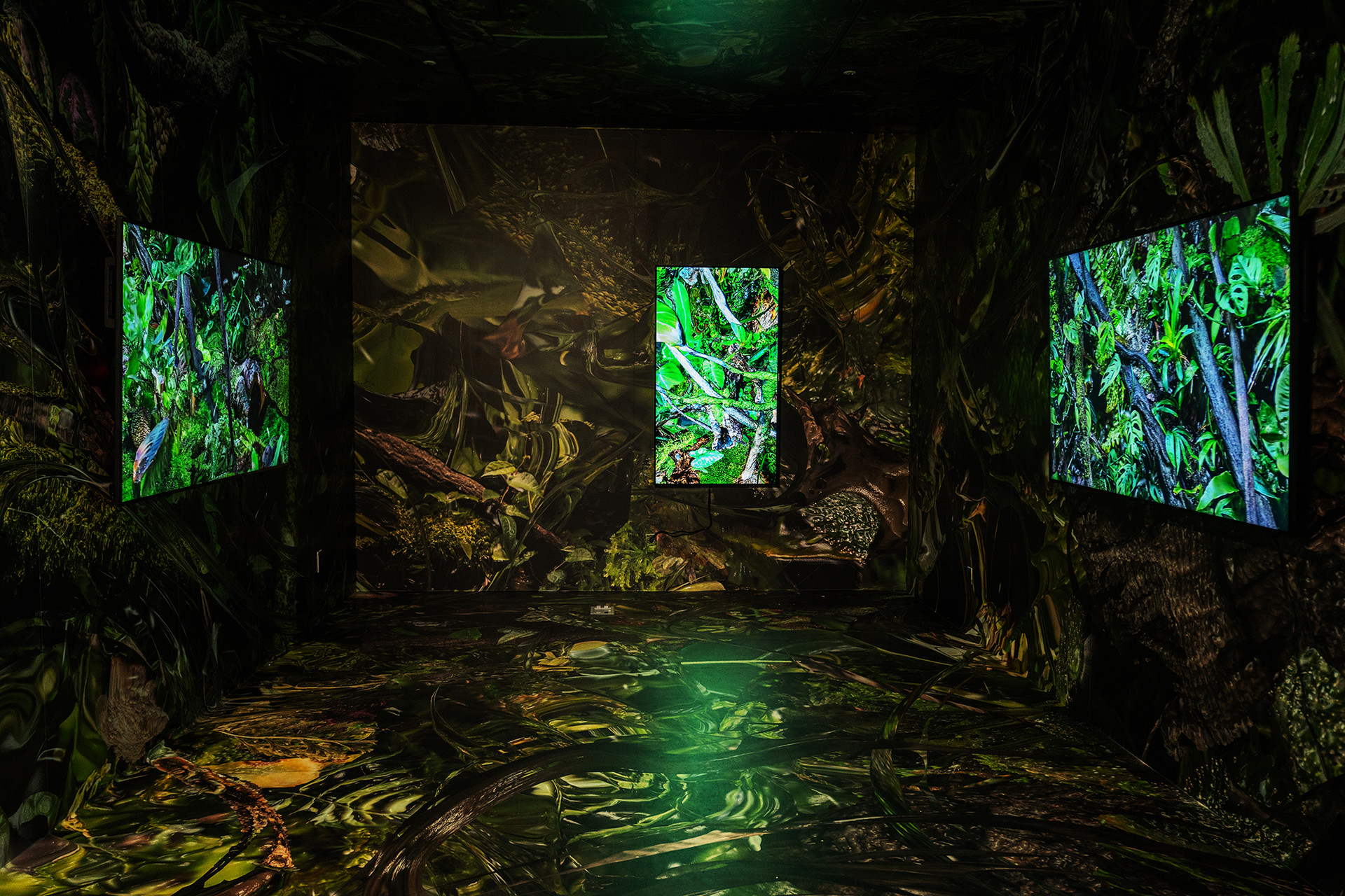 벽지, 3채널 비디오, 가변설치
